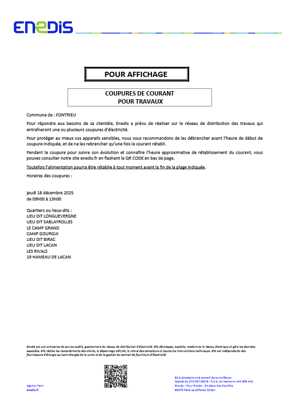 En raison de travaux sur le réseau