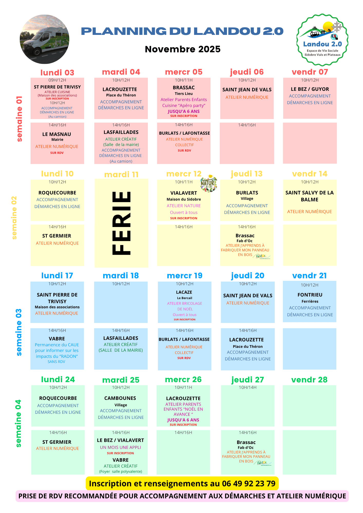 Plusieurs ateliers et autres accueil/aides aux démarches sont également prévus au cours du mois d'octobre :